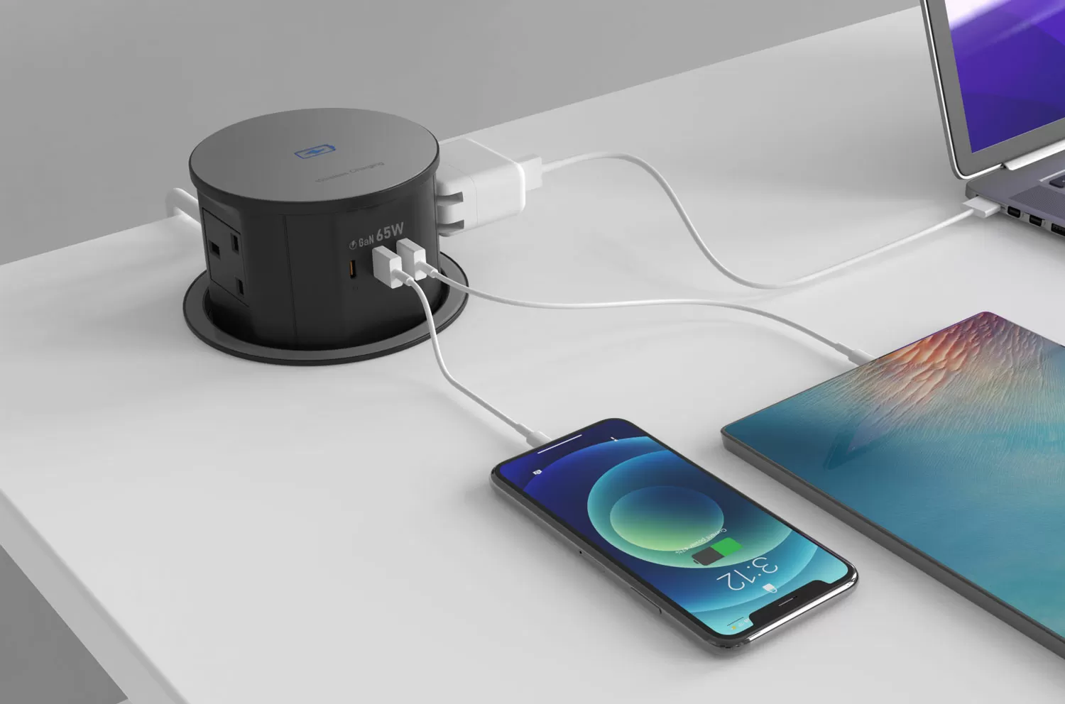 СОЛО АП/SOLO UP блок розеток выдвижной СЕРЫЙ/ЧЕРНЫЙ