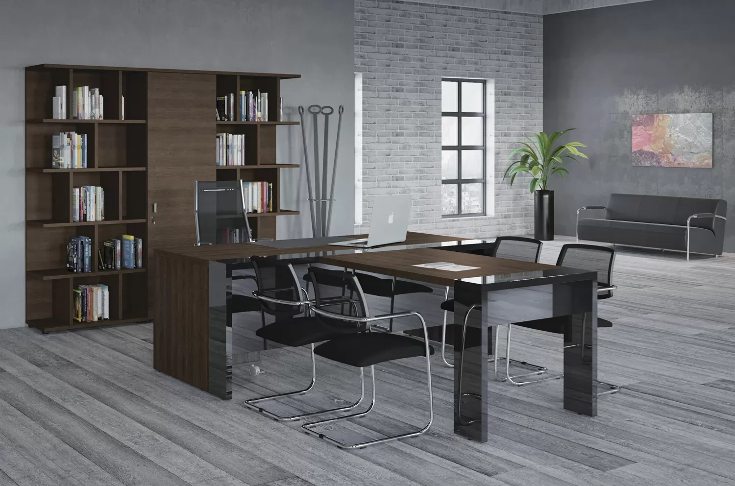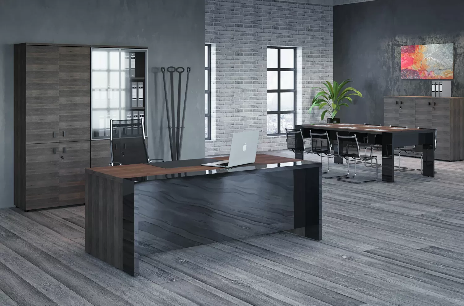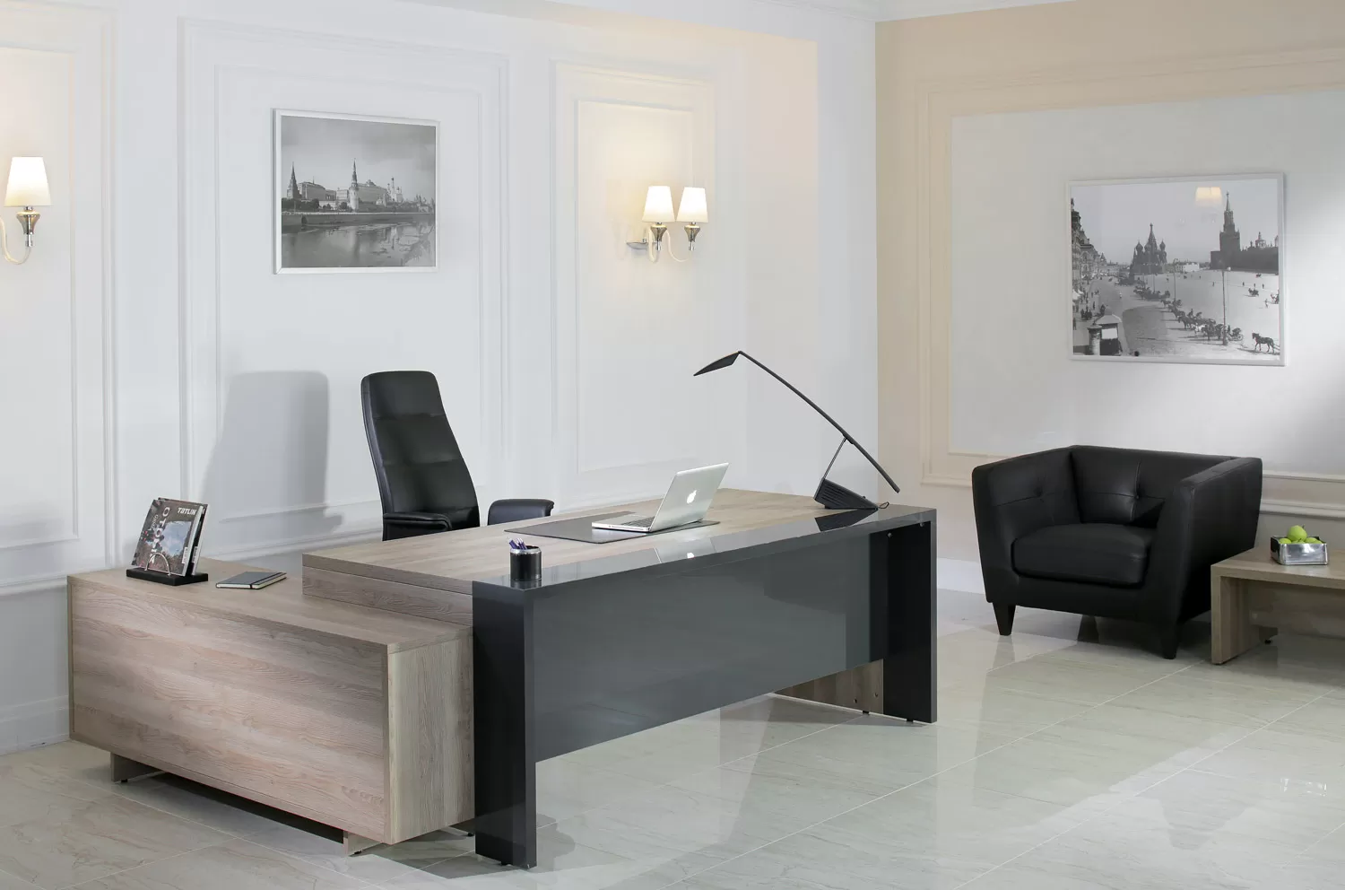 ЛАВА/LAVA Стол письменный 220 ТАБАК/ЧЕРНЫЙ ГЛЯНЕЦ