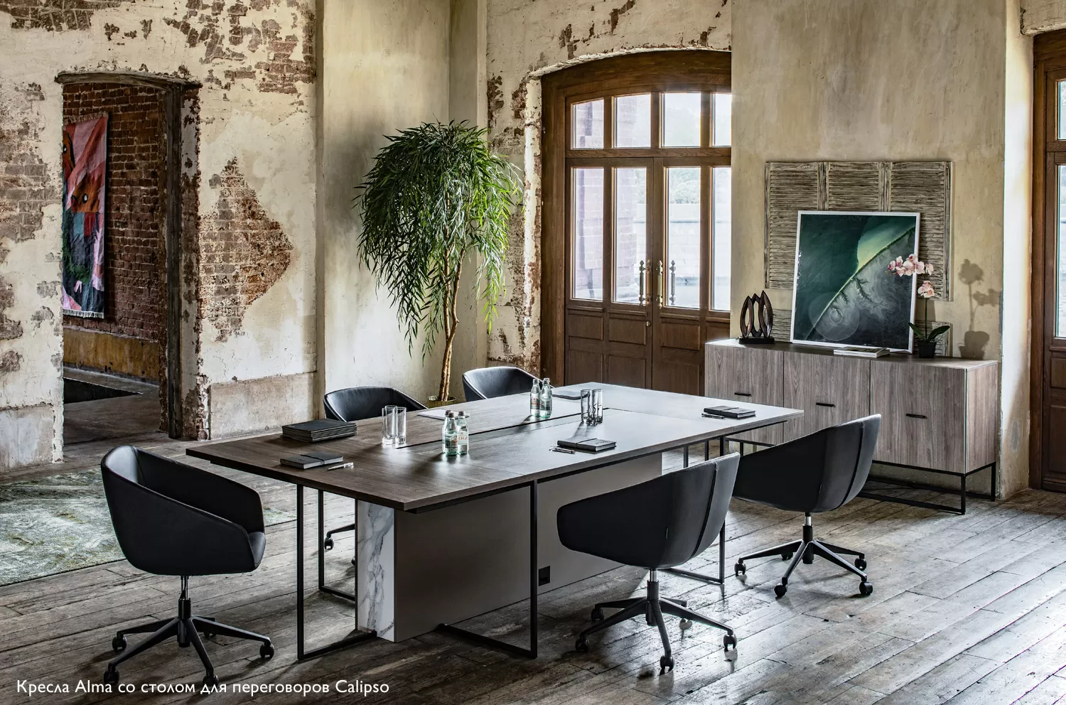 АЛМА/ALMA Кресло посет., металл ЧЕРНЫЙ/КОЖА