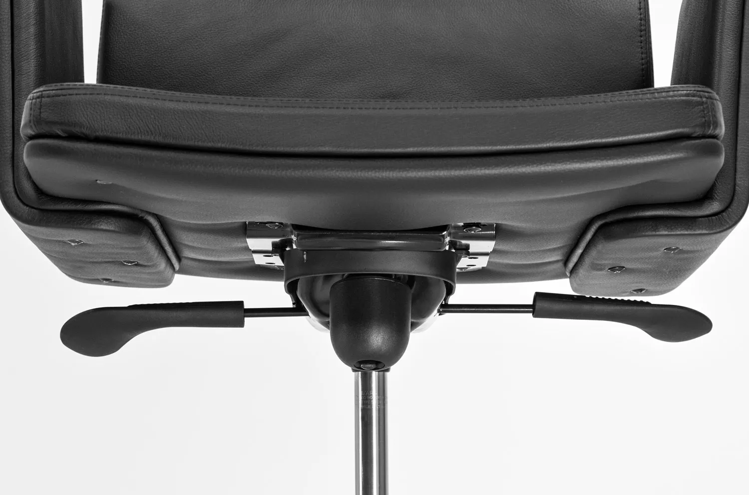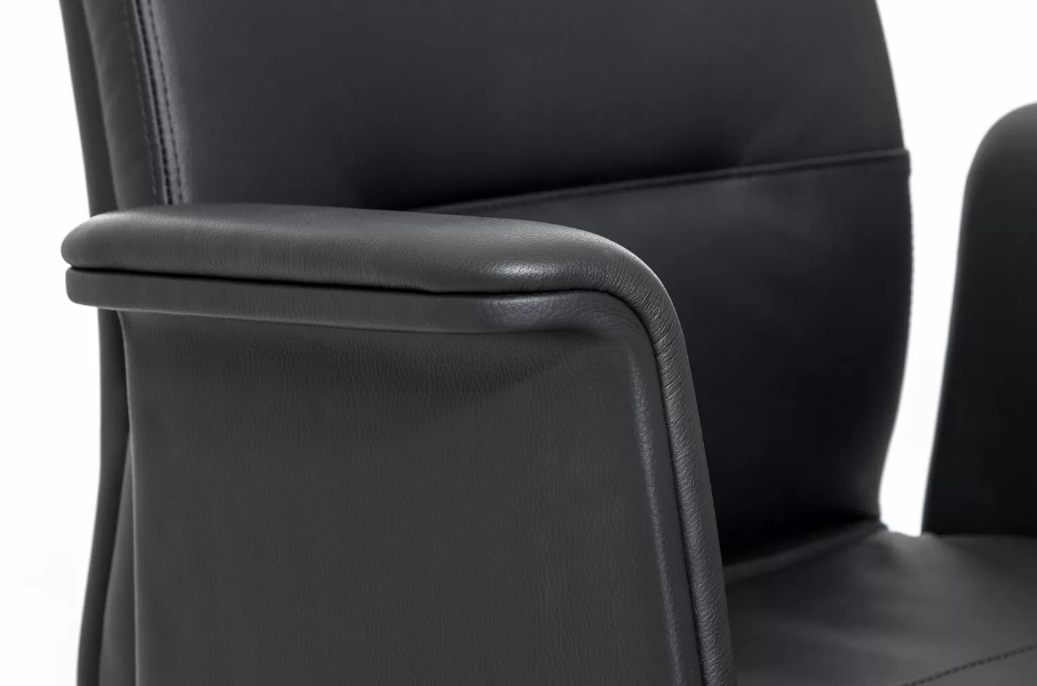 Кресло Karl сочетает строгий дизайн и элитные материалы. Фиксированные подлокотники из натуральной кожи обеспечивают комфорт без регулировок. Механизм качания с контролем положения тела позволяет расслабиться во время долгих переговоров. Полированная пятилучевая база и кожаная обивка подчеркивают статус офиса, создавая респектабельную атмосферу в кабинете руководителя или переговорной комнате.