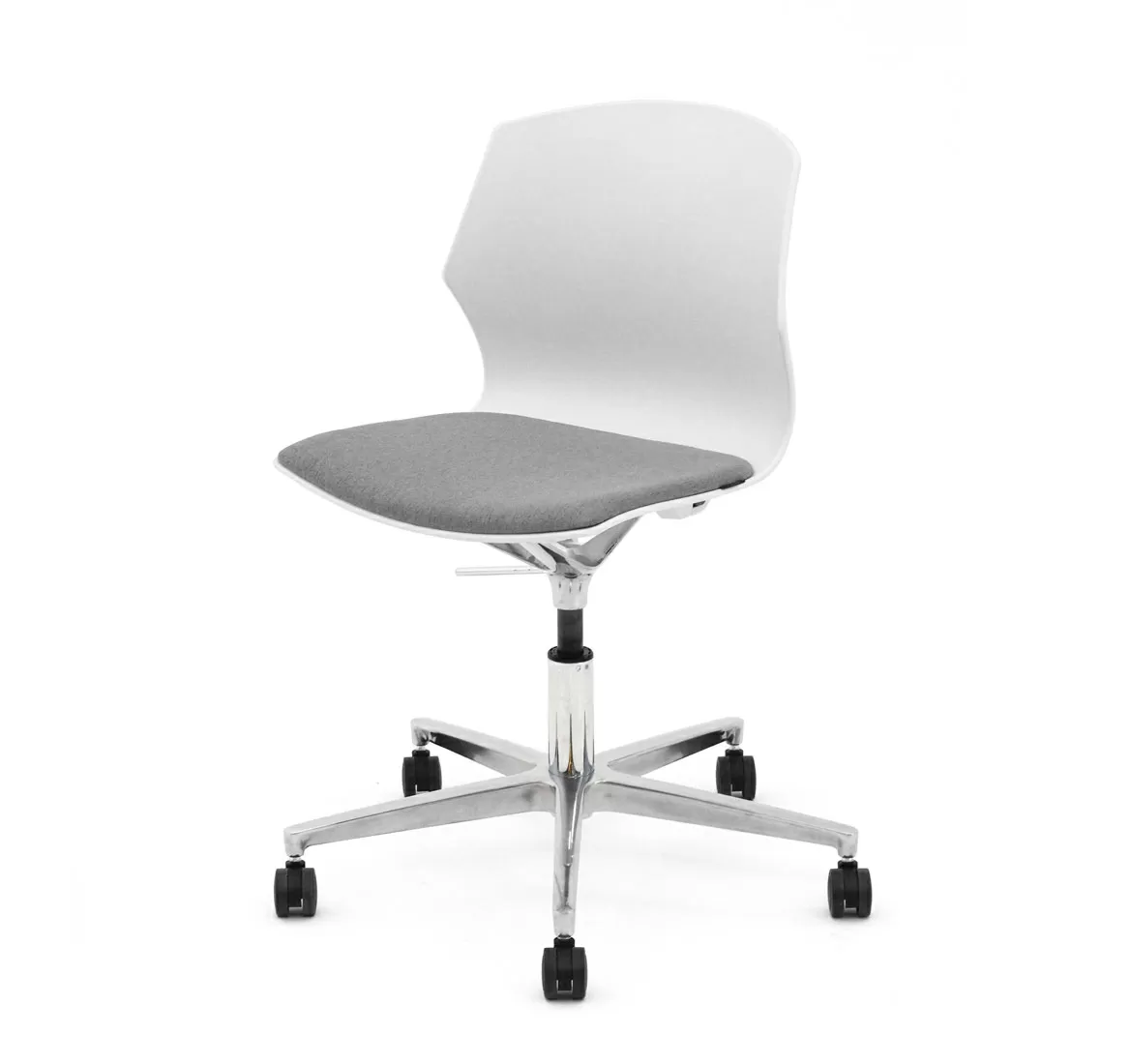 СОЛЕ/SOLE Кресло пластик,сиденье тк СЕРЫЙ/БЕЛЫЙ/ХРОМ