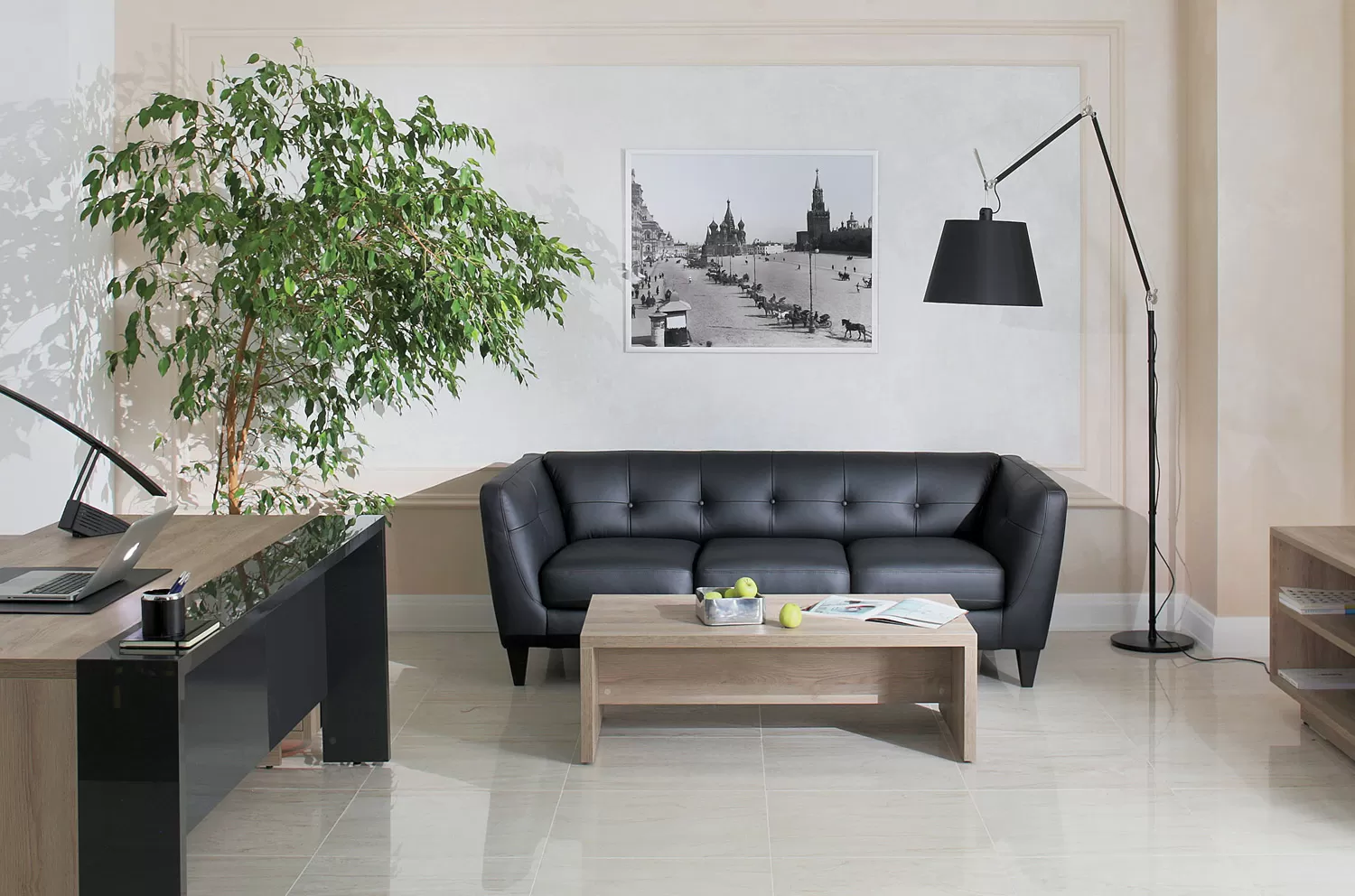 ВОЛЬТА/VOLTA Диван 3-мест кожзам+кожа ЧЕРНЫЙ/КОЖА