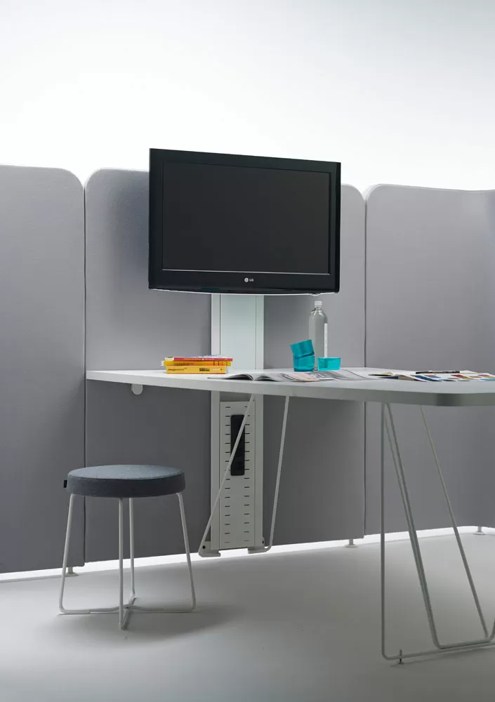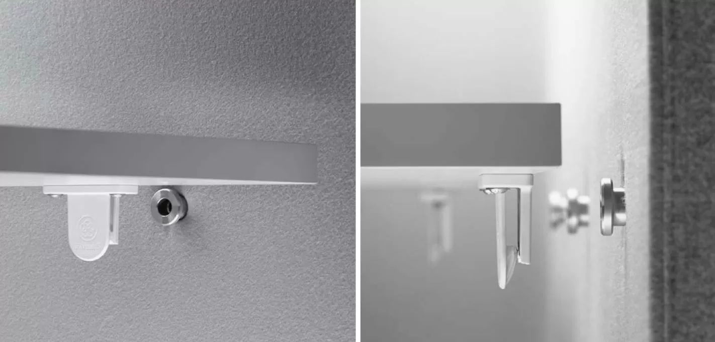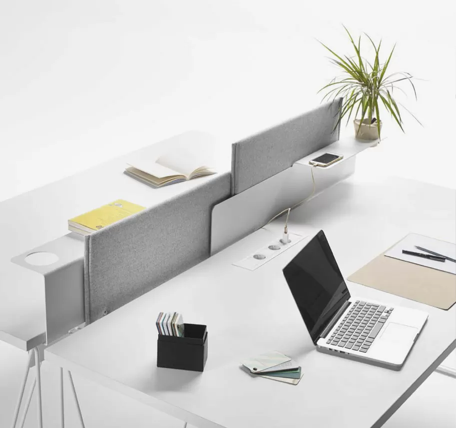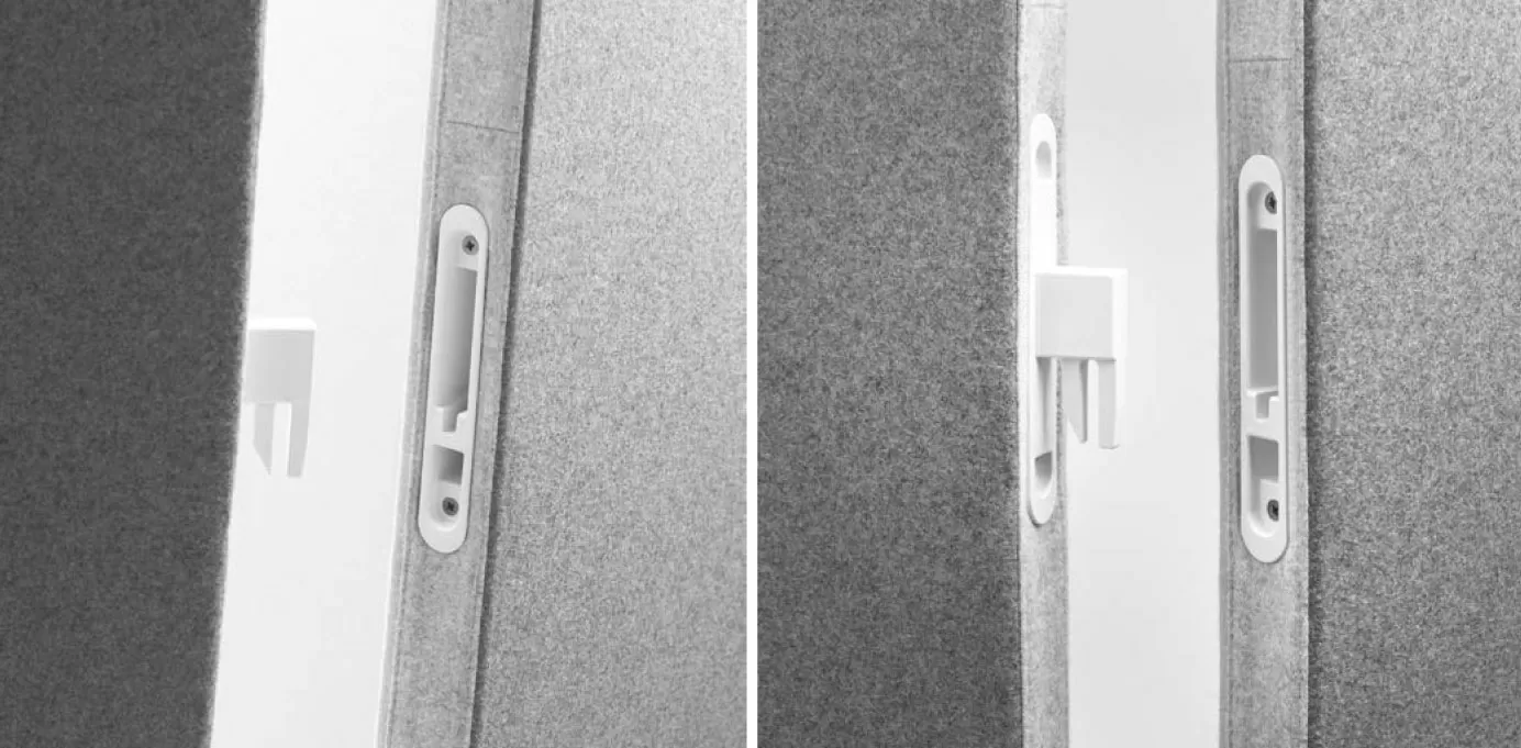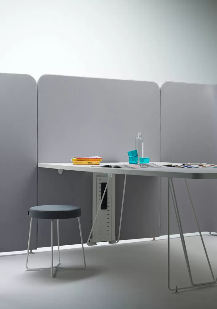 Одним из больших преимуществ системы акустических панелей Let’s является простота сборки. Нет необходимости в винтах на каждом стыке. С помощью простых разъемов панели можно соединить за считанные секунды, что сокращает время установки. Также легко в один клик можно присоединить к панели и стол из коллекции Let’s.