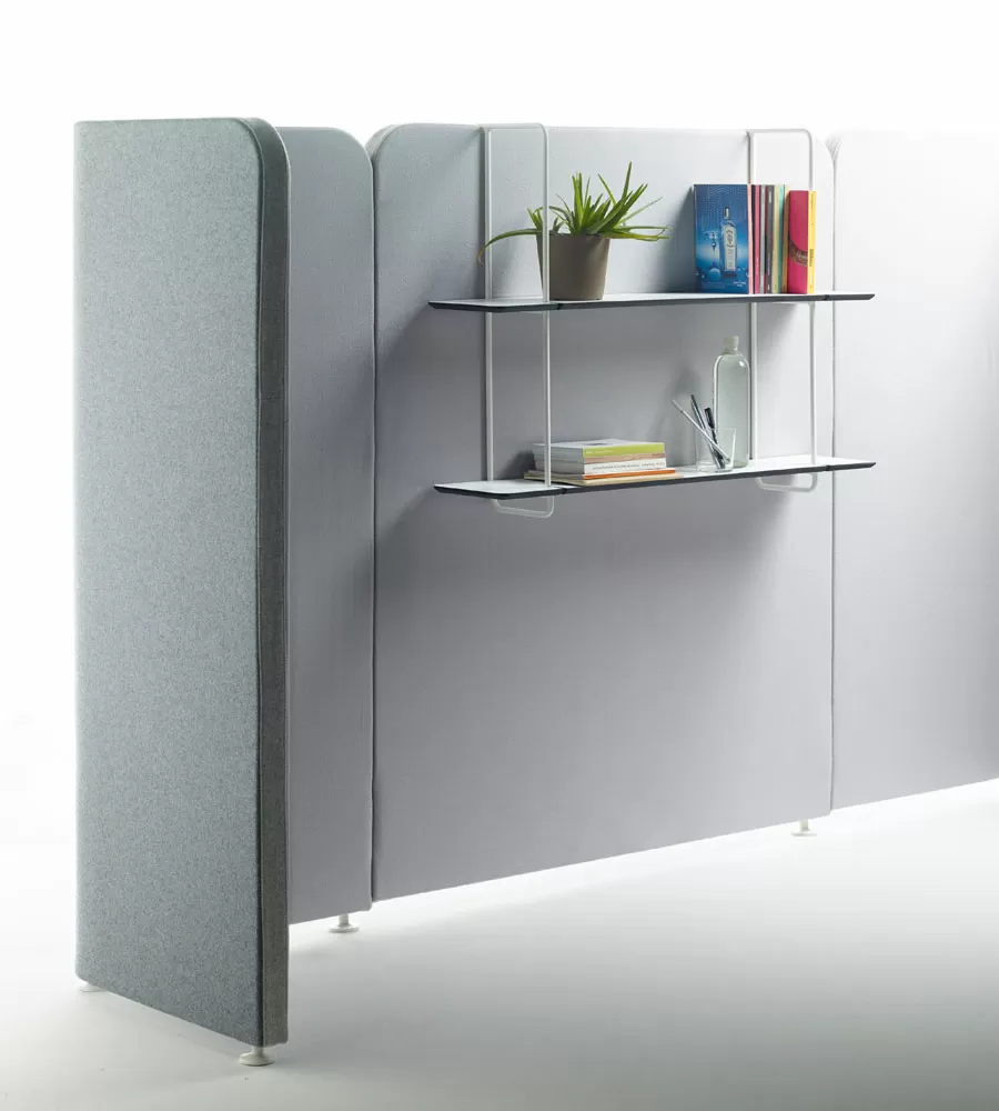 В качестве систем хранения можно использовать навесные полки, которые легко устанавливаются на акустические панели. Такое решение, помимо удобства использования, также позволит создать уютную домашнюю обстановку.