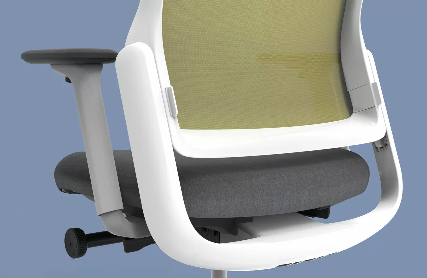 ME от Wilkhahn – это конструктор, который каждый может собрать под свои индивидуальные потребности. Можно выбрать сетчатую спинку, дополнительную амортизацию спинки, ручную или автоматическую регулировку веса, фиксированную или регулируемую глубину сиденья, кресло с возможностью наклона вперед или без него, а также с подлокотниками 2D или 4D, подобрать материал, цвет и фактуру.