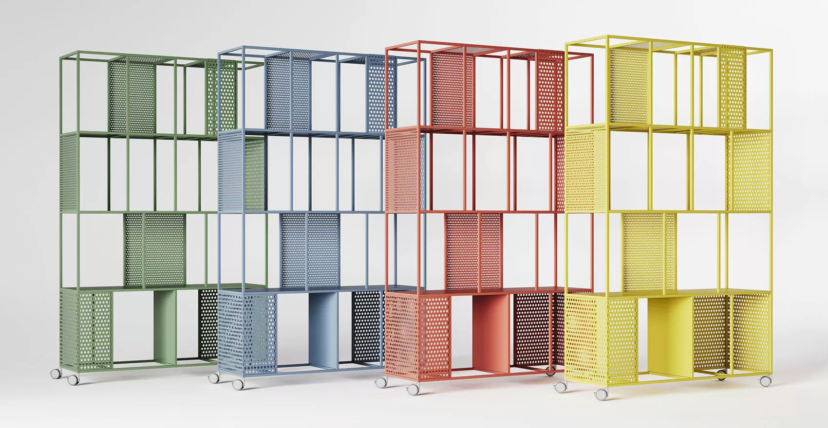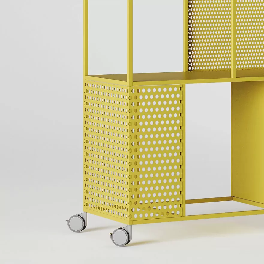 Ножки стеллажа могут быть выполнены в двух вариантах: с компенсаторами для неровного пола или на ударопрочных колесах для мобильности. MindFrame изготовлен из прочной трубы квадратного сечения. Разнообразие цветовых решений позволяет легко вписать стеллаж в различные интерьеры, делая его стильным акцентом в любом пространстве.
