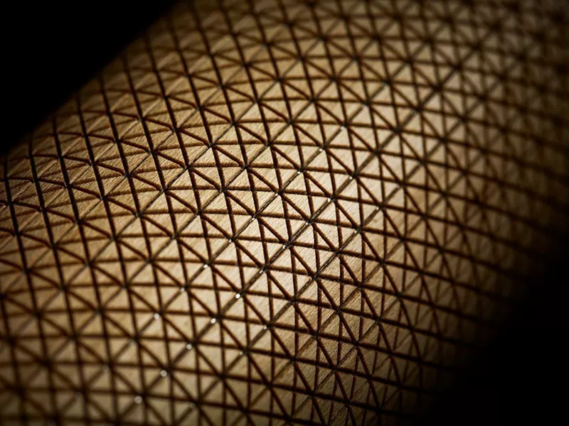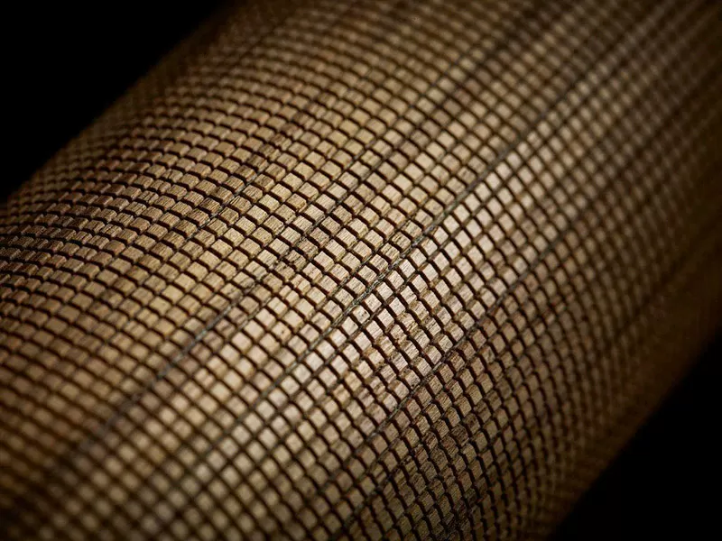 При создании шпонированной ткани используется высококачественный шпон, полученный исключительно из экологически чистого лесного сырья. Слои натуральной древесины толщиной 0,5 мм аккуратно приклеиваются к текстильной основе и обрабатываются лазером, что придаёт поверхности дополнительную гибкость. Материал можно защитить слоем лака или масла, а также окрасить обычными красками для дерева с помощью валика или распылителя.
