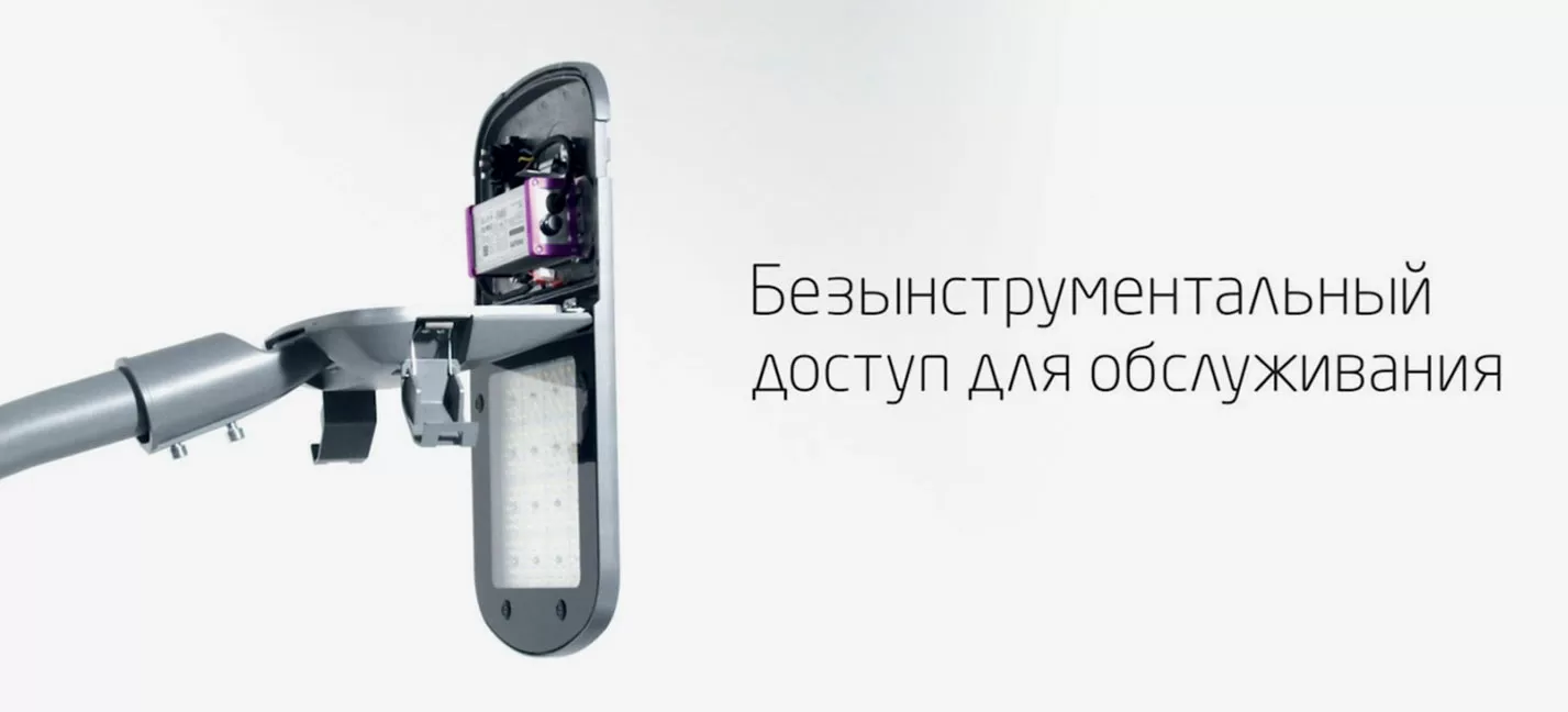 Конструкция корпуса обеспечивает безынструментальный доступ к электронным компонентам при монтаже светильника. Подключение URBAN реализовано с использованием механического размыкателя, безопасно прерывающего питание в процессе обслуживания.