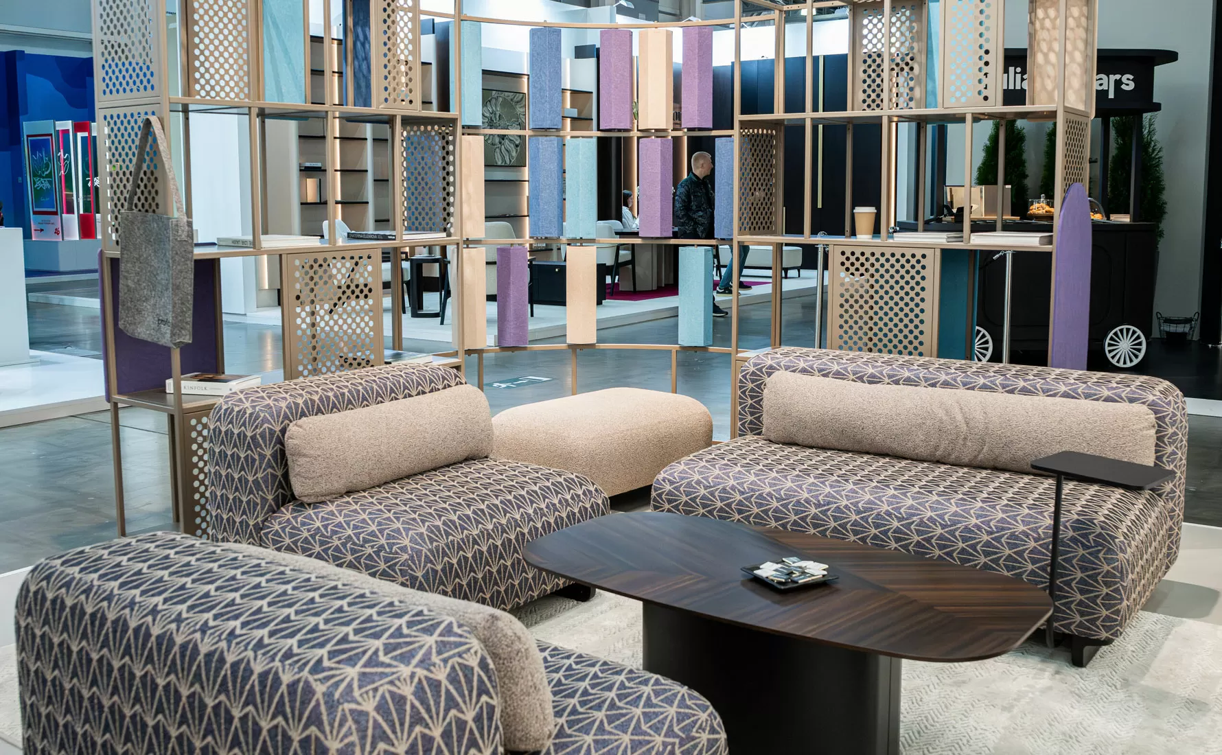 Поддержку этой атмосфере непринужденности оказали модульные диваны Just — наша складская программа, кастомизированная специально под концепцию стенда.