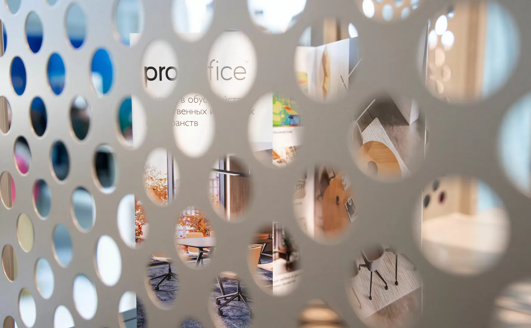 Обрамлением экспозиции послужило масштабное световое полотно — продукт, созданный специально к выставке и демонстрирующий потенциал нашего светотехнического департамента. Представленные потолочные подвесные светильники стали воплощением синтеза акустики и эргономики света. Цветовая температура 4000K обеспечивает естественное нейтрально-белое освещение, идеальное для рабочих и общественных пространств: оно не утомляет глаза и поддерживает высокую концентрацию внимания.