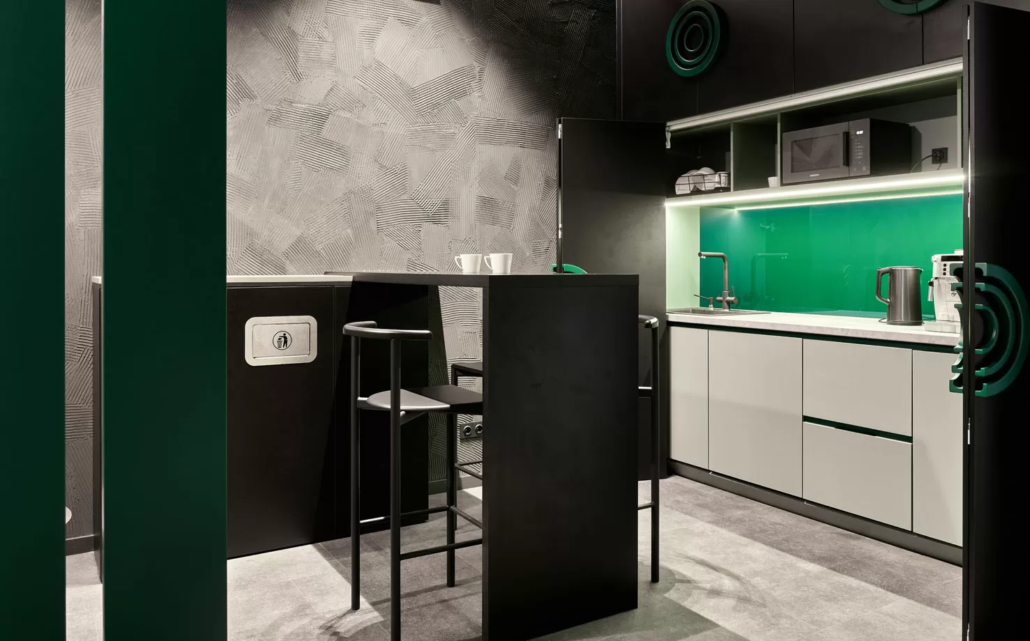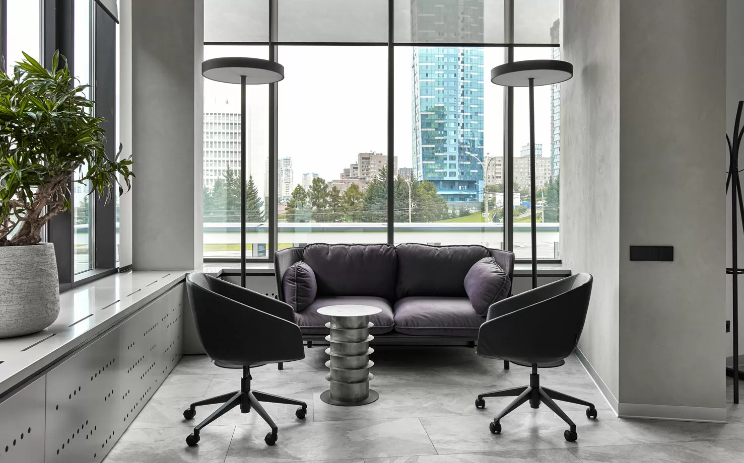 Корпусная мебель индивидуального изготовления, рабочие кресла и мягкая мебель в офисе Таврида Электрик
